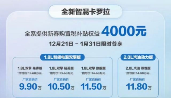 在公布价格的一汽丰田还为全新智混卡罗拉推出了吸引力十足的上市权益,包括全系提供4000元的新车购置税补贴,进一步降低了消费者的购车门槛。卡罗拉一贯的高保值率、成熟的售后服务体系和较低的用车成本,都使得全新智混卡罗拉在市场上具有了更高的性价比。
