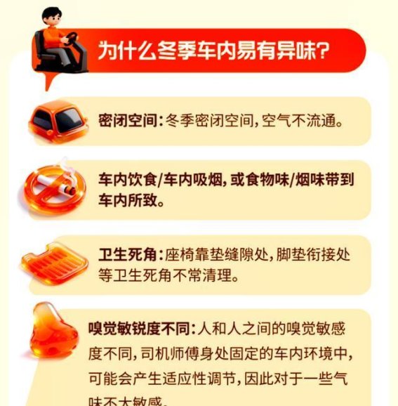 每年进入冬季,网约车车内异味问题总会成为各大网络平台的热议话题。这一问题不仅困扰着司机朋友,也让网约车平台头疼不已。车内异味产生的原因复杂多样,乘客投诉频繁,使得司机的服务分和订单量都可能受到影响。事实上,异味并不全是司机的责任。一方面,每个人对气味的感知不同,同样的车,有的乘客觉得清新,有的乘客却觉得有异味;另一方面,上一位乘客可能喷过香水或者携带食物,残留的气味也会影响下一单乘客的体验。面对这样的情况,司机们有时会选择忽略平台发出的洗车提示,觉得“这不关自己事”,但结果往往是差评增加、服务分下降,最终陷入订单减少的恶性循环。