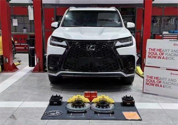雷克萨斯LX570作为一款接近三吨的全尺寸SUV,其原厂刹车系统在日常驾驶中表现尚可,但在高速行驶或长时间制动情况下,原厂前四活塞、后单活塞的刹车卡钳和约345毫米的刹车盘容易显露出不足。前轮制动力不足导致制动响应延迟,连续刹车容易出现热衰减,驾驶者在激烈驾驶或满载状态下常会感到安全感缺失。这种情况下,升级刹车系统便成为改善车辆操控性和行车安全的重要手段。通过针对性的改装,可以在不大幅增加成本的前提下,显著提升LX570的制动性能与驾驶信心。