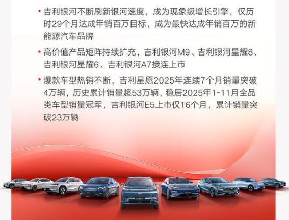 168万辆的新能源销量不仅是数字上的突破,更标志着吉利在转型过程中取得的关键里程碑。新能源已深度内化为企业发展的核心引擎,是技术路线胜利、平台化战略胜利以及战略定力胜利的综合体现。在未来决定行业格局的新能源赛道上,吉利已占据有利位置,并拥有持续领跑的强大动能。这场“主升浪”,从技术积累到市场执行,无不体现出吉利的全面能力,也昭示着企业在新能源汽车行业未来竞争中,将保持领先优势。