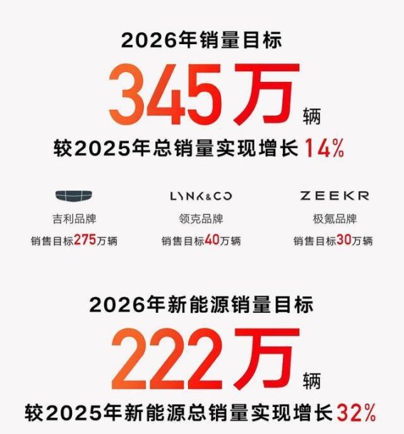 展望吉利新能源的增长势头将持续延展。公司设定的2026年新能源销量目标为222万辆,预计同比增长32%。这一目标的实现,依托现有产品的市场惯性,更得益于技术迭代与全球化拓展的支撑。雷神电混与浩瀚纯电架构的持续优化,为产品性能升级提供了底层保障;新能源车型已成为吉利全球化战略的先锋力量,从银河E5到极氪009,在多国市场成为销量标杆,为品牌开拓海外市场提供了广阔空间。技术进步与全球布局相辅相成,为新能源增长提供了持续动力,也彰显出吉利在国际新能源汽车竞争中掌握主动权的能力。
