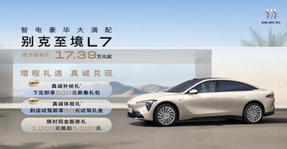 在2026年的开年时刻,别克品牌正式发布了至境L7的新年回馈计划——“1420km真诚回馈礼”,活动时间为1月1日至1月31日。在此期间,完成开票及交付的购车用户,将获得等值500元的补能相关补给礼;1月下定购车的用户可享1000元抵5000元的购车金优惠。为了鼓励用户亲身体验,凡到店试驾的消费者,还可获得50元试驾礼。这些优惠政策可与国家以旧换新政策叠加,用户置换至境L7最高可享1.5万元置换补贴。别克通过这一系列实实在在的购车权益,既回馈了用户长期的信赖,也体现了品牌在服务和购车体验上的用心布局。