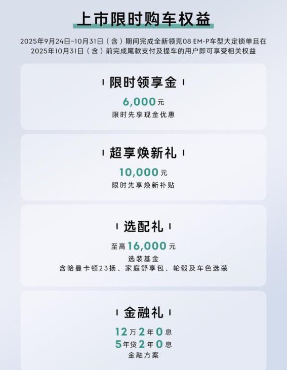 对于追求新能源出行、关注续航和性价比的用户而言,领克08 EM-P此次新增车型无疑提供了极具吸引力的选择。无论是日常通勤的纯电静谧体验,还是长途出行的低耗无忧,以及丰富的智能驾驶配置和购车福利,都让08 EM-P成为中型插混SUV市场中的热门车型。凭借强劲动力、领先的智能驾驶辅助以及实用续航能力,新车不仅满足用户多样化出行需求,也进一步巩固了其在细分市场的竞争地位,为消费者带来了切实可感的购车价值和优质用车体验。