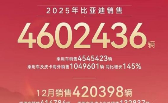 在所有品牌之中,比亚迪依然牢牢占据着行业的制高点。2025年全年累计销量达到4602436台,这一数字不仅再次刷新自身纪录,也让其在全球新能源市场中的领先优势进一步扩大。值得注意的是,这种领先并非单纯依赖国内市场的体量优势,而是来自国内与海外的双线发力。全年海外销量首次突破百万辆,同比增幅达到145%,标志着比亚迪的全球化战略已从布局期迈入收获期。从产品出海到体系出海,从单点市场突破到多区域协同增长,比亚迪正在用规模化成果验证其长期投入的正确性,也为中国新能源品牌树立了一个清晰的国际化样本。