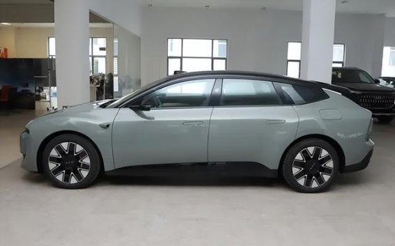 从侧面看,E5 Sportback的运动气质逐渐显现。作为一款Sportback车型,流畅的溜背式车顶线条是核心特征。自B柱之后,车顶自然下滑,与短促紧凑的尾部衔接,形成典型轿跑轮廓。这种造型不仅强化视觉运动感,还让整车姿态显得修长且稳重。近4.9米的车长、接近2米的车宽以及近3米的轴距,使E5 Sportback在体量上明显大于同级中型轿车。低重心的纯电平台布局,让侧面观感稳重而不笨拙,兼顾豪华感与年轻化动感。