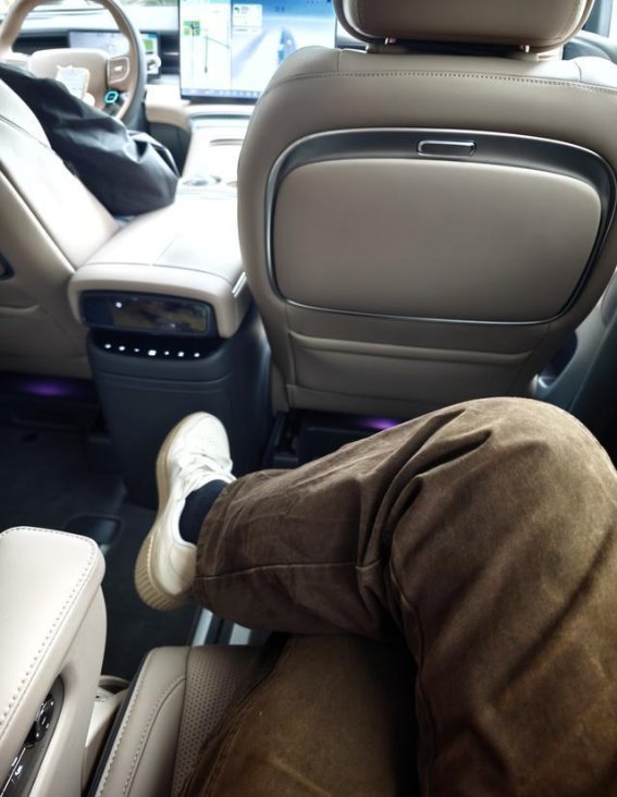 乘坐空间和舒适性表现尤为出色。二排座椅后移到接近“大四座”状态时,腿部空间极为宽裕,几乎可以随意伸展。第三排乘客在此状态下也有超过一拳的腿部空间,头部空间宽敞,座椅柔软且靠背可调,长途乘坐体验舒适无压力。下沉式后备箱设计非常实用,即便三排座椅完全收折,也能形成平整空间,装载大件行李毫无压力。二排座椅支持零重力调节和按摩功能,操作便捷,舒适性堪比商务舱。唯一的小瑕疵是头枕位置对小个子乘客略高,但整体体验仍然非常出色。