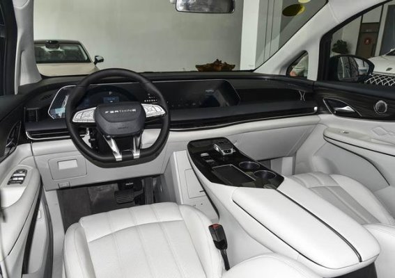 进入车内,环抱式座舱布局营造出豪华感,中控台采用双联屏设计,高配车型搭载高通骁龙8155芯片,内置腾讯TAI 4.0多媒体系统,操作流畅顺滑。车内大面积软性材质包裹,触感细腻温润,精致饰条点缀提升档次感。座椅布局灵活多变,第二排为独立零重力航空座椅,支持10向电动调节、加热、通风和按摩功能,乘坐体验极为舒适;第三排座椅可完全放平形成纯平空间,适应多种使用场景。7座布局保证了每位乘客舒适体验,尤其是第二排和第三排的腿部空间宽敞,即便长途乘坐也能保持放松状态,充分体现中大型MPV的舒适与实用。