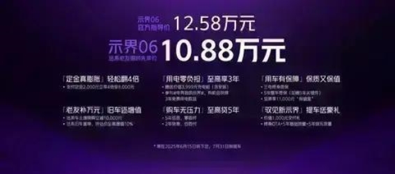 2025年5月20日,神龙汽车旗下新能源品牌“HEDMOS示界”的首款车型示界06正式上市,限时售价10.88万元,相比指导价12.58万元享有明显优惠,同时提供价值3.9万元的购车礼遇。作为神龙汽车“二次创业”的首发车型,示界06以“中国成本+法系技术”为核心理念,瞄准10-15万元区间的电动SUV市场,与比亚迪元PLUS、AION Y等主流车型展开正面竞争。新车在驾控体验、续航能力、智能科技、设计美学及服务保障五个方面形成明显差异化,为消费者带来全新的电动出行选择,也展示了神龙汽车在新能源领域的创新决心和技术实力。示界06不仅在价格上极具竞争力,更通过细致的技术优化和产品设计,体现出品牌对用户需求的深刻理解与前瞻布局。