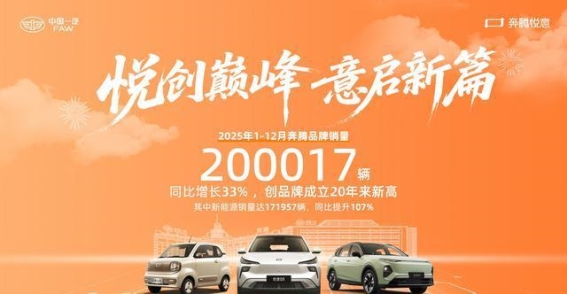 2025年,一汽奔腾突破20万辆销量大关,全面迈入了全新的发展阶段。通过精准的产品布局、强大的技术创新和全生命周期的优质服务,奔腾不仅满足了消费者日益多元化的需求,也为品牌未来的发展奠定了坚实的基础。2026年,奔腾将深耕电动化和智能化赛道,完善产品矩阵和服务体系,加速向“自主品牌第一阵营”迈进,成为更多消费者信赖的出行伙伴。