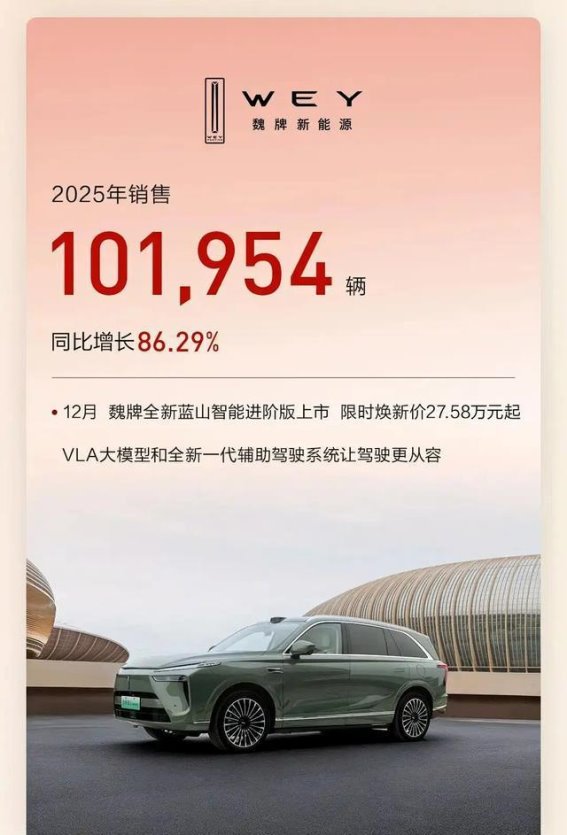 魏牌的表现同样不容忽视,2025年,魏牌新能源车型的销量达到了101954辆,同比大幅增长86.29%。作为长城的高端品牌,魏牌凭借其前瞻性的技术和独特的设计,吸引了大量注重品质与智能化的消费者。新推出的魏牌蓝山智能进阶版,换购价27.58万元起,提供了宽敞的空间和智能辅助驾驶系统,进一步提升了消费者的驾驶体验。这一切都使魏牌在高端汽车市场上逐步取得了竞争优势。