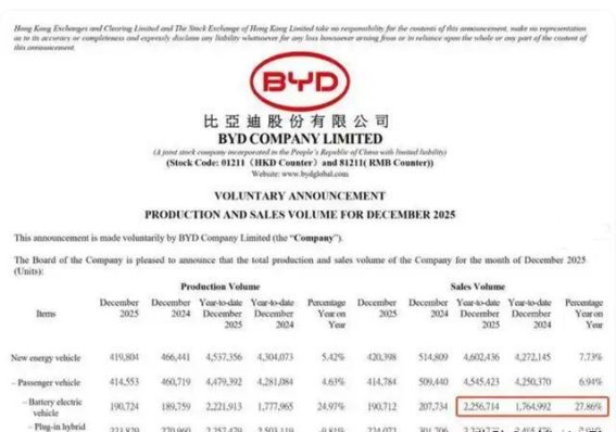 2026年1月2日,全球车坛掀起了惊天波澜:比亚迪在2025年凭借225.67万辆纯电动汽车交付量,首次超越特斯拉,成功登顶全球电动汽车销冠。这一事件不仅是中国车企的伟大突破,更标志着全球电动车市场格局的根本性变化。