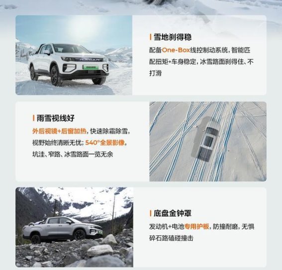 不仅如此,雷达金刚PHEV山地版的动力系统经过特殊调校,满载情况下它能够轻松攀爬55%的陡坡,而脱困响应速度是传统燃油皮卡的10倍。这使得它在复杂的山地地形中,表现得更加游刃有余。相比之下,雷达地平线PHEV高寒版则通过优化电池管理系统和快充技术,确保在寒冷的环境下,车主依然能享受充电快速、续航长久的优势。