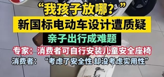 何鹏林指出,新国标对电动自行车的安全性和结构做出了很多改进,但并未改变载人标准。这意味着,家长如果在后衣架上安装符合标准的儿童座椅,完全可以在不违反法律的情况下,使用电动自行车接送孩子。专家的这一解释,解决了消费者对于新国标电动自行车的疑虑,尤其是那些原本依赖后座接送孩子的家长,能够通过安装儿童座椅来恢复电动自行车的载人功能。