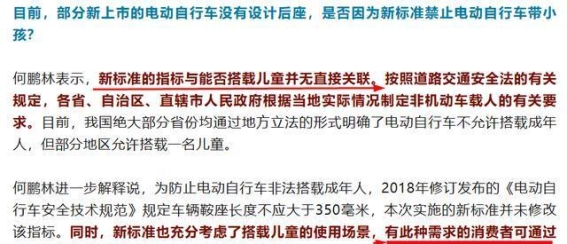 针对家长们的困扰,专家提出了解决方案。中国电子技术标准化研究院安全技术研究中心副主任何鹏林表示,虽然新国标取消了电动自行车的后座,但这一变化并不会影响车辆合法载人功能。他解释道,车主仍然可以在后衣架处安装儿童座椅,并按照新国标规定,合法地携带12岁以下的儿童。