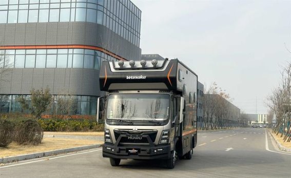 瓦纳卡豪沃悍将Pro房车采用了重汽豪沃Pro底盘,底盘的强大性能为车辆提供了稳定的支持。车身白车身的高强钢用量高达38%,完全符合欧盟ECER29最新碰撞法规,确保了行车的安全。副车架使用了700L高强度汽车大梁钢,强度是常规结构钢的三倍,经过抛丸底处理和静电喷粉防锈工艺的处理,能够应对多种复杂路况。动力系统方面,搭载潍柴2.5T柴油涡轮增压发动机,最大功率125kW,峰值扭矩500N·m,满足国六排放标准的具备了强劲的动力和较好的环保性能。前后钢板悬挂系统和前桥盘式刹车系统为车辆提供了稳定的制动性能,主驾驶室配备气悬减震座椅,进一步提升了驾驶的舒适性。