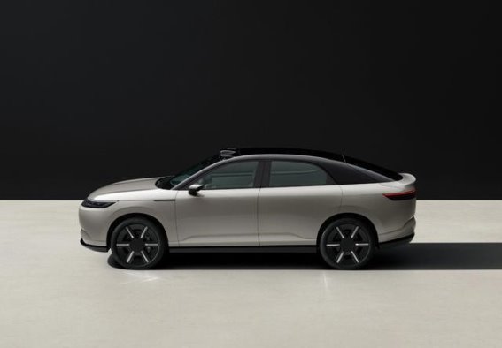 车身侧面,AFEELA Prototype 2026呈现出一种极具动感的跨界风格。双色车身配合大溜背造型,使其具备了轿跑的流线型美感,同时也保持了SUV应有的灵动性。与AFEELA 1轿车版本相比,新车的车身高度明显提升,这使得它的跨界特性得到了进一步强化。为了优化空气动力学性能,车门采用了隐藏式电动门把手,并配有宽体套件的轮眉,这不仅提升了车身的硬朗感,也有效降低了风阻。车尾部分,溜背线条与小尺寸扰流板相得益彰,贯穿式尾灯与前脸屏幕形成了视觉上的呼应,整体造型简洁而不失运动感。