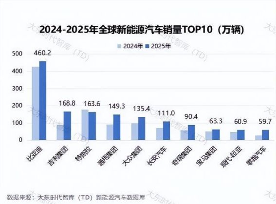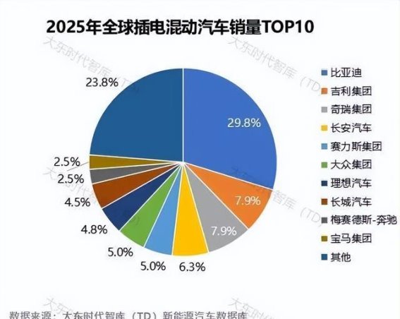 从整体市场来看,2025年全球新能源汽车市场份额呈现出“头部集中”的趋势,前三大车企的市场份额达到了34.6%。前五名和前十名的市场份额分别为47.0%和63.9%。这一数据表明,新能源汽车行业的竞争正在逐渐集中,头部车企凭借着强大的市场份额和技术优势,逐步主导了全球新能源汽车市场。