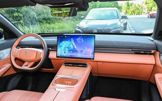 进入深蓝S07的车内,首先映入眼帘的是15.6英寸的2.5K向日葵屏。这个屏幕可以左右旋转15°,主副驾驶都能方便操作,搭载的高通骁龙8295P芯片确保了DEEPAL OS4.0系统的流畅运行,语音助手的响应速度也达到了旗舰手机的水平。