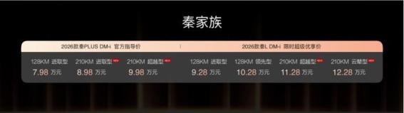 在接下来的产品讲解环节,三款新车的亮点逐一呈现。2026款秦L DM-i和秦PLUS DM-i进一步升级,搭载了大容量电池,纯电续航最高可达210公里,能够满足家庭日常通勤的需求。得益于第五代DM-i技术的优化,百公里亏电油耗低至2.79升,实现了节能与便利的完美平衡。这些车型不仅能够轻松应对城市日常通勤,还能在节假日的长途出行中提供强大的续航保障,综合续航突破2100公里,让家庭出行更加自由从容。