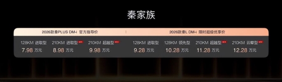 发布会中,产品讲师详细介绍了三款车型的亮点。2026款秦PLUS DM-i与秦L DM-i,在继承比亚迪节能与舒适的基础上,进行了全面升级,配备了大容量电池,纯电续航最大可达210公里。结合第五代DM-i技术优化,百公里亏电油耗低至2.79升,实现了节能与便利的完美平衡。这两款车的综合续航突破2100公里,日常通勤一周甚至两周仅需一次充电,让用户在城市和长途出行中都能感受到从容与自由。