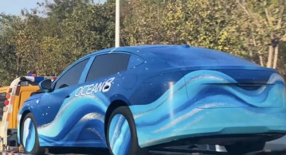 从曝光的伪装谍照来看,海豹08的设计风格延续了比亚迪Ocean-S概念车的精髓。车身的动感线条、流畅的曲面设计,使得海豹08充满未来感与力量感。尽管现阶段的车型仍然披着厚重的伪装衣,但从细节上已经能够捕捉到一些亮点。例如,车身上清晰可见“OCEAN 8”的标识,而激光雷达与半隐藏式门把手的设计也无疑揭示了比亚迪在技术创新与豪华感营造上的深度思考。