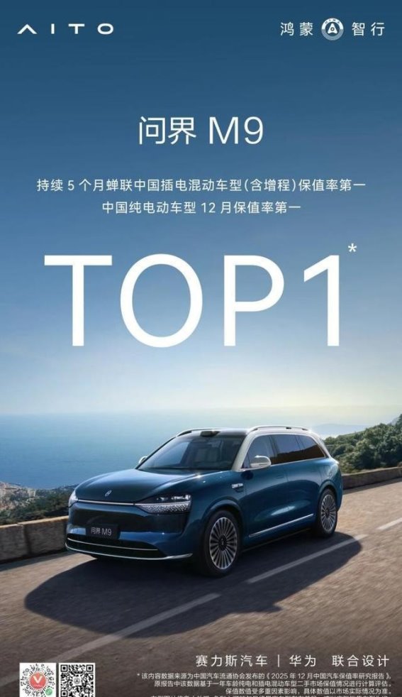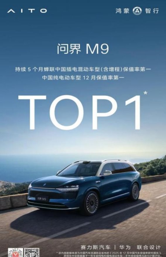随着新能源市场的不断发展,问界M9凭借其卓越的综合性能和过硬的产品力,在新豪华SUV领域脱颖而出。近日,中国汽车流通协会发布的《2025年中国汽车保值率研究报告》显示,问界M9不仅荣膺中国纯电车型12月保值率第一,还连续五个月稳居中国插电混动车型(含增程)保值率的第一位。如此出色的成绩,不仅证明了问界M9在核心技术、智能制造、全周期服务等方面的深厚积淀,更彰显了市场对其长期价值的高度认可。