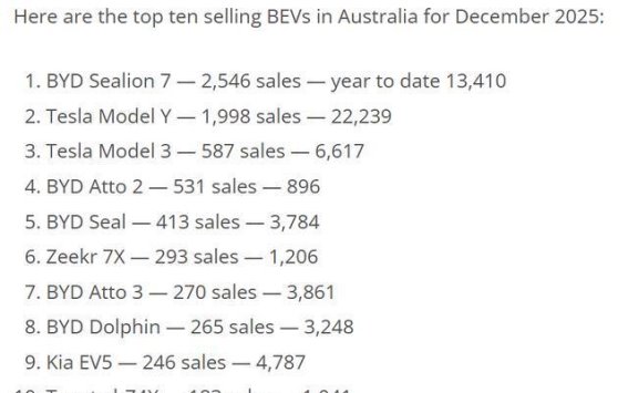 在电动汽车的销量排名上,除了起亚EV5和丰田bZ4X这两款非中国品牌车型,其他进入前十的电动汽车几乎都来自中国品牌,并且大多数是中国本土生产或由中国企业主导的车型。比亚迪的Atto 2车型自2025年11月上市以来,表现异常强劲,迅速攀升至电动汽车销量前十名,并在12月跃升至第四位。凭借这一成绩,比亚迪的全年销量同比增长超过150%,最终跻身澳大利亚年度销量前十榜单第八位,彰显了中国品牌在电动汽车领域的强大竞争力。
