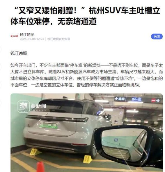 有车主分享过自己的尴尬经历:开着一辆宽度接近两米的SUV,在一条老街上开,导航显示可以右转,但眼前却是两根石墩,车子根本无法通过,只能尴尬地倒车、绕行。这样的情境,许多车主都曾经历过。即使绕过了限宽桩,接下来的问题往往就是停车问题。在许多老旧小区和商场的停车场,车位设计已经无法满足现如今越来越宽的车身,车主们经常面临“车停进了,人下不来”的困境。