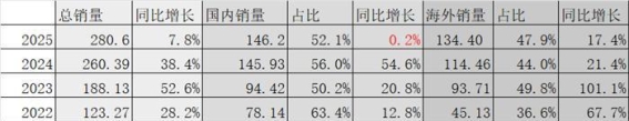 奇瑞的海外销量占比已经从2021年的不到30%上升至2025年的47%,而国内销量占比则由72%降至52.1%。这一变化表明,海外市场正在成为奇瑞集团新的增长引擎。面对比亚迪等竞争对手的强势崛起,奇瑞仍需加大国际市场的开拓力度,提升品牌在全球范围的影响力。