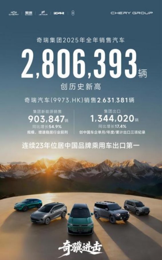 在汽车行业竞争愈发激烈的背景下,奇瑞集团提出了2026年实现320万辆销量的目标,这一目标比2025年的280.6万辆增长了14%。虽然在整体市场环境面临下行压力的情况下,这一目标看似有些激进,但奇瑞集团的高层对这一目标充满信心。根据奇瑞汽车股份有限公司执行副总裁李学用的表述,奇瑞将通过一系列战略举措实现这一目标。奇瑞集团究竟采取了哪些措施,如何在复杂的市场环境中稳步推进?