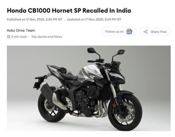 近日,美国国家公路交通安全管理局(NHTSA)宣布,本田公司将召回部分2025款CB1000 Hornet SP摩托车,共计452辆。召回的原因是这些摩托车的活塞及活塞环可能存在制造缺陷,导致连杆轴承失效。这一问题若未及时解决,可能会引发后轮抱死或机油渗漏至后轮胎,增加摩托车骑行过程中的安全风险。此举引发了公众对于本田摩托车质量控制的广泛关注。