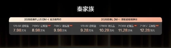 2026年1月8日,比亚迪秦家族迎来全新升级,2026款秦 L DM-i与2026款秦 PLUS DM-i 210KM长续航版同步上市。两款新车以亲民售价8.98万元起,为消费者提供了更具性价比的家轿选择,进一步巩固了秦家族在家轿市场中的冠军地位。秦家族自上市以来,凭借其卓越的品质与可靠的性能,已经累计销量超过270万辆,成为众多家庭的首选车型。