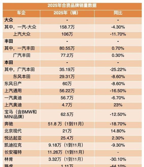 2025年,对合资品牌来说,注定是一个不平凡的年份。曾经的合资巨头,在中国市场的销量逐渐滑坡,面临着前所未有的压力和挑战。这个变化的背后,是国产品牌的崛起、消费者需求的转变,以及合资车企适应中国市场的迟疑与挣扎。如何在激烈的竞争中生存下去,成为了合资品牌必须面对的课题。本文将带你一起复盘2025年合资品牌的销量表现,看看它们如何在新时代中自我求生。