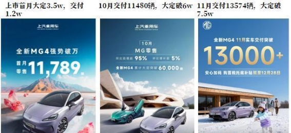 如果说MG的品牌转型依靠全新MG4的突破是至关重要的,那它的市场表现便是这一战略的成功证明。作为一款全新打造的车型,MG4的表现超乎想象,成为MG破局的“王牌”。上市39分37秒,大定订单破万,24天内便交付了超过1万辆,首月大定量达到3.5万辆,连续四个月的月度交付量都破万,到年底累计大定量已经超过8万辆。