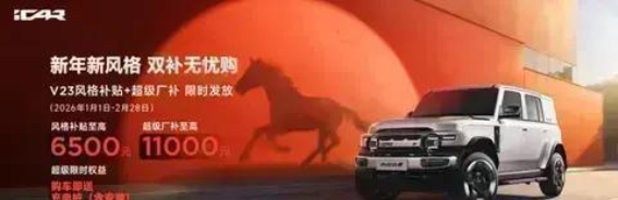 为了回馈消费者对V23的热烈关注,iCAR同步推出了2026年开年“大礼”——“双补双享”购车福利。针对新能源汽车购置税政策的调整,iCAR推出“风格补贴”,全系V23车型最高可享6500元补贴,直接抵扣购车时产生的税费。iCAR还为消费者提供高达11000元的“厂家超级补贴”,无需繁琐的手续或名额争夺,轻松享受优惠。这些福利有效降低了购车门槛,让消费者能够以更优惠的价格体验到V23的五星安全和卓越性能。