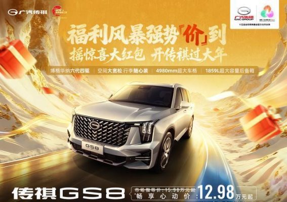 广汽传祺酒泉吉元佳和店推出的最新购车优惠活动,凭借其诱人的价格和丰富的购车礼遇,吸引了众多消费者的关注。从2026年1月15日起,传祺GS8系列车型将在店内进行限时优惠,价格从13.48万元起,给力的折扣与精彩的车主福利,不容错过。