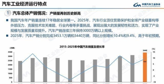 2025年,中国汽车产业保持全球领先地位,全年汽车产销量分别达到了3453.1万辆和3440万辆,同比增长10.4%和9.4%。这不仅使中国汽车市场稳居全球第一,更是中国汽车产业第17年占据全球汽车市场首位。中国的汽车产业规模早已远超其他国家,成为全球汽车制造与消费的主力军。