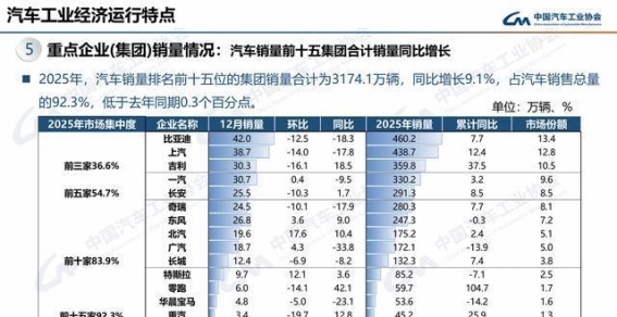 2025年,中国汽车市场的竞争格局依然高度集中,前十五大汽车集团合计销量占市场总销量的92.3%。比亚迪、上汽、吉利等企业在市场中占据领先地位,新能源汽车的销量集中度更是高达95%。这种集中度的提升意味着行业龙头的技术优势和资源整合能力进一步加强,也确保了整个行业的发展稳定性。