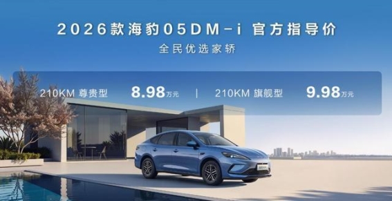 比亚迪于2026年1月9日正式发布了旗下海洋网的两款重磅家轿——2026款海豹05DM-i与海豹06DM-i超享版。这两款新车型分别推出了210公里的纯电续航版本,涵盖尊贵型、旗舰型等多个配置,官方售价区间为8.98万元至12.68万元。凭借其超高的性价比和智能化的配置,这两款新车迅速引起了市场的广泛关注,展现了比亚迪在插电混动车领域的强大创新能力。