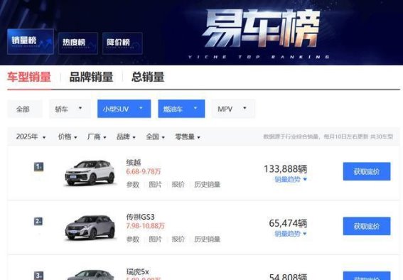 在竞争激烈的中国汽车市场,传祺GS3影速凭借其不俗的产品实力和强劲的销量增长,成为了燃油小型SUV市场中的一匹黑马。2025年,影速全年销量达到65,474辆,位居榜单前二,环比增长17.4%。这不仅标志着影速连续三年实现销量攀升,也再次验证了消费者对其的高度信任和认可。
