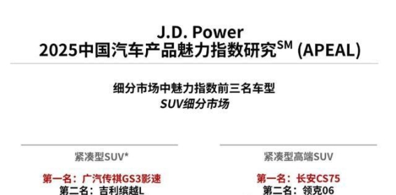 事实上,销量的背后离不开影速在质量上的持续用心。根据中国汽车质量网的统计数据,影速自2023年起稳居自主品牌小型SUV质量冠军,而在《J.D. Power 2025中国车辆可靠性研究(VDS)》中,影速更是荣获紧凑型SUV可靠性第一名。在《J.D. Power 2025中国汽车产品魅力指数研究(APEAL)》中,影速同样位列紧凑型SUV的榜首。这些荣誉不仅仅是对影速品质的充分肯定,也是它在市场中赢得消费者信赖的有力证据。