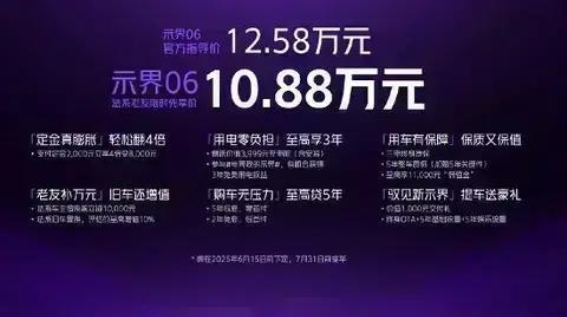 5月20日,神龙汽车全新自主新能源品牌“HEDMOS示界”正式推出其首款车型——示界06。这款A+级纯电SUV在市场上引发了广泛关注。定价10.88万元,并为早期购车者推出高达39,000元的礼遇,成为一款性价比极高的电动SUV。新车标配满配,刷新了A+级纯电SUV市场的标准,同时也彰显了神龙汽车在电动化领域的创新与决心。