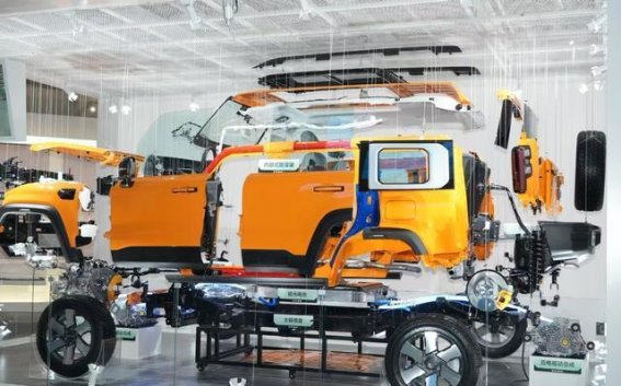 BJ40增程在国博的展出方式非常独特。整车被拆解成272个关键部件,通过这种展现形式,参观者不仅能近距离接触到每个部件,还能直观地感受到北京越野在技术与安全方面的领先地位。特别是在车身架构的展示上,裸露的非承载车身让人一眼看出其与众不同的设计理念。“两纵八横”一体式高强度大梁,使得整车拥有极强的抗压性和耐用性,而全球新能源越野车中独一无二的内嵌式金属防滚架更是备受瞩目。这项技术不仅提升了车辆的安全性,更为车内空间提供了最大化的保护。