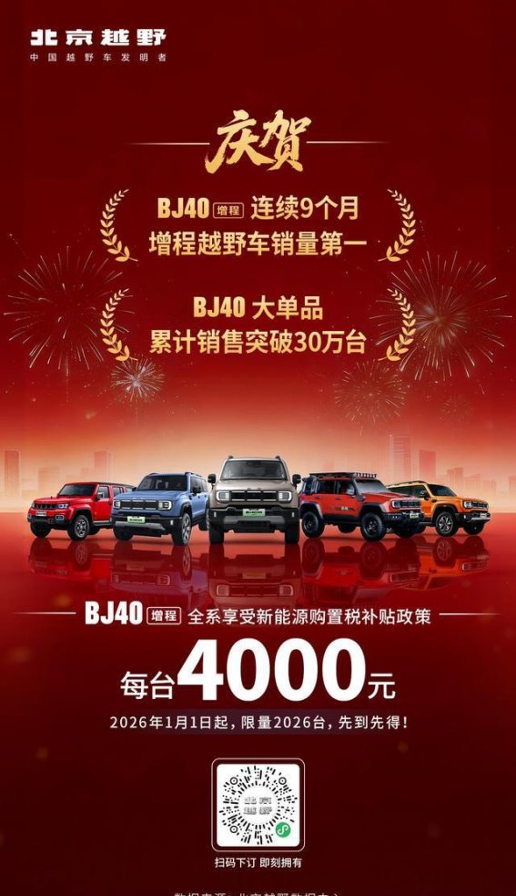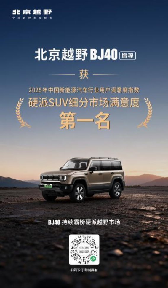在2025年新能源汽车用户满意度指数测评中,BJ40增程荣获硬派SUV细分市场用户满意度第一,进一步巩固了其在用户心中的高品质形象。北京越野品牌也凭借优异的产品质量,获得了“市场质量信用AAA企业”的殊荣。这些销量和口碑的双重认证,正是BJ40增程高质量与高性能的真实写照。