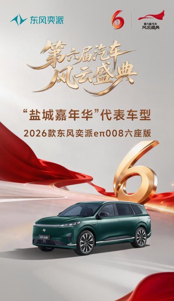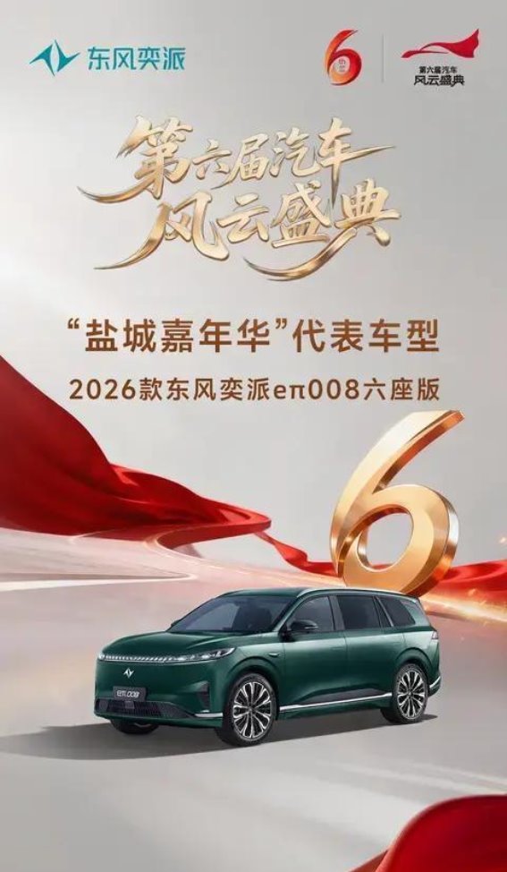 在家庭出行需求愈加多元化的今天,消费者对汽车的期待已不再局限于传统的代步工具,而是向更高层次的安全性、舒适性以及智能化发展。2026款东风奕派eπ008六座版作为东风奕派针对家庭出行需求精心打造的车型,不仅在产品力上展现出独特的优势,更凭借卓越的表现成功入选第六届《汽车风云盛典》的“盐城嘉年华”代表车型,成为15-20万级新能源中大型SUV市场中的一颗耀眼新星。
