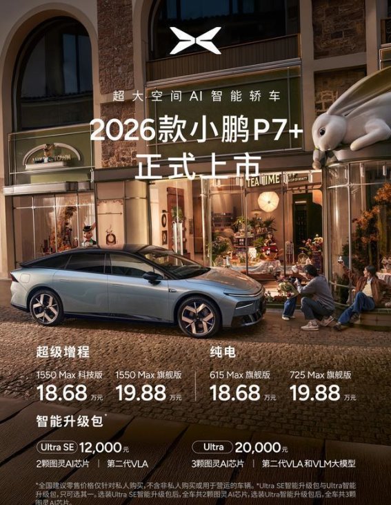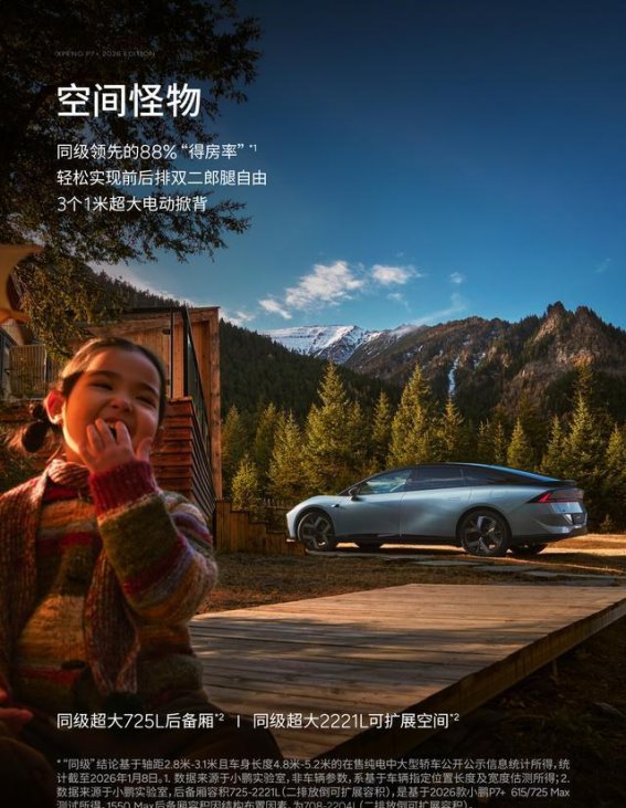 2026款小鹏P7+的上市,无疑为新能源汽车市场带来了新一轮的冲击。这款车不仅在外观设计和内饰上进行了深度升级,更在智能化配置、续航能力和舒适性上实现了多维度的突破。作为一款适合年轻家庭的高端轿车,P7+凭借其极具竞争力的价格与出色的综合性能,成为了众多消费者的理想之选。