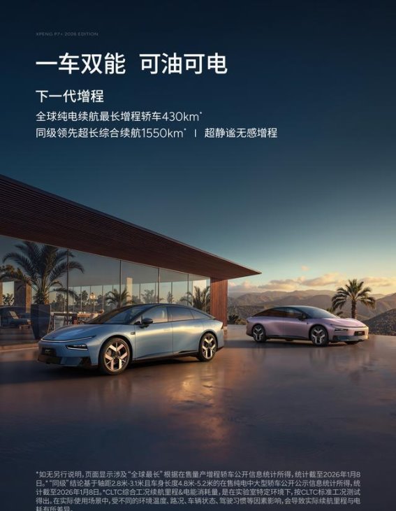 2026款小鹏P7+的最大亮点之一就是其“增程版”动力系统,采用了CLTC纯电续航430km的表现,使得日常城市通勤更加高效便捷。而其综合续航能力更是达到了1550km,消除了长途驾驶时的续航焦虑,为消费者提供了更为广阔的出行半径。这一续航能力的提升,意味着车主在出行过程中可以更少依赖充电桩,极大地方便了长途旅行。
