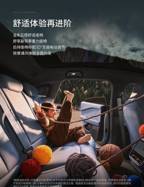 2026款小鹏P7+在舒适性方面进行了全面的升级。前后排座椅不仅配备了通风和按摩功能,而且副驾驶座椅还采用了零重力设计,进一步提升了乘坐舒适性。无论是日常通勤还是长途驾驶,座椅的舒适度都能大大减少长时间乘坐带来的疲劳感。