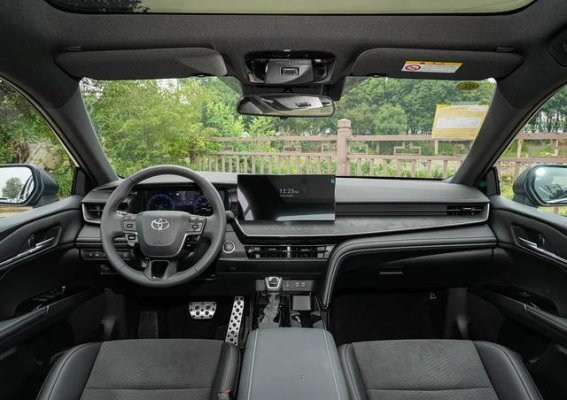 进入车内,凯美瑞的座舱设计进一步提升了豪华感和科技感。中控台采用软性材质包裹,搭配精致缝线工艺,减少了廉价感。座舱内搭载了高通骁龙8155芯片,提升了4倍的算力,使得车内智能系统更加流畅和响应迅速。尊贵版及以上车型配备了12.3英寸全液晶仪表盘和14.3英寸悬浮中控大屏,操作系统支持OTA升级和原生应用商店,兼容苹果CarPlay与华为HiCar等互联功能。高配车型还搭载了AR风格化HUD抬头显示和流媒体内后视镜,提升了驾驶体验和安全性。后排空间也非常宽敞,适合家庭出行,尤其是在长时间乘坐时,优化的座椅角度有效减少了疲劳感。