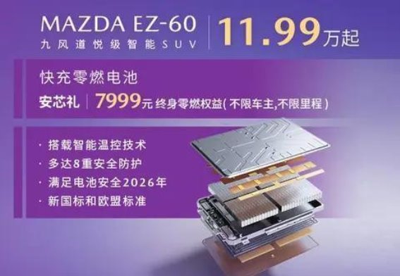 在快速发展的电动出行时代,电动汽车逐渐走进了越来越多家庭的车库。对于绝大多数用户而言,电动汽车的核心竞争力并非仅仅依赖于华丽的外观、复杂的车载系统,更多的是那颗隐藏在底盘下的“心脏”——电池。电池不仅影响到续航里程,更关乎着驾驶者的安全。每一次充电,每一次出行,电池的表现都是决定体验好坏的关键所在。长安马自达EZ-60正是以其创新的“快充零燃电池”技术,精准对接电动车用户的实际需求,解决了电动出行中的核心痛点,给消费者带来了全新的安全与性能双重保障。